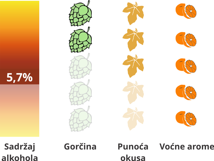 Svijetlo mutno pšenično pivo punog okusa i karakteristične voćne arome, nastalo stapanjem najpoznatijih stilova pšeničnog piva, bavarskog i belgijskog. Jedinstvenost okusa ovog piva dolazi od kombinacije pšeničnih i ječmenih sladova, uz dodatak kore narandže i korijandera, koji osiguravaju osvježavajuću egzotičnu notu piva.